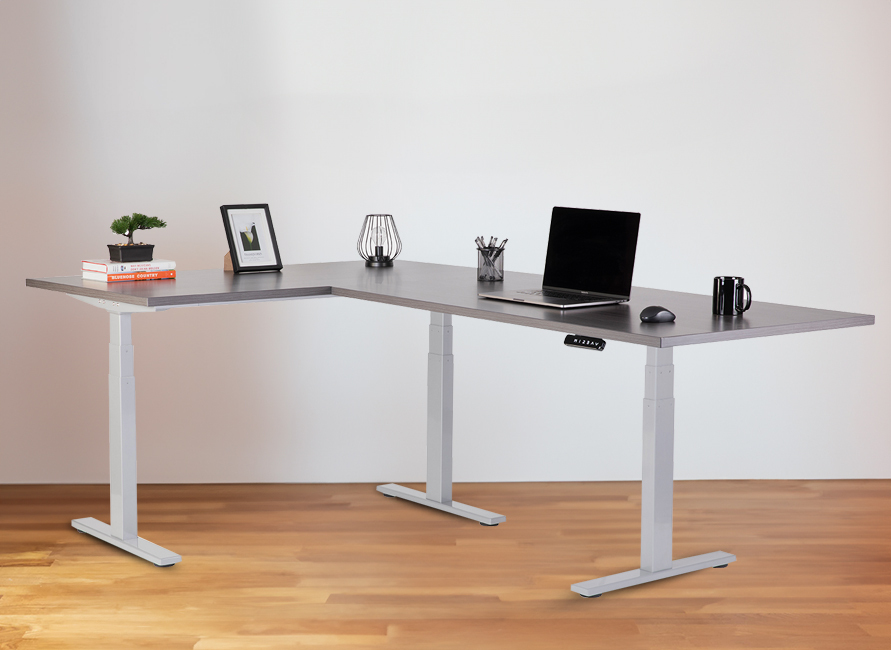 Three-Motor L-Shaped Standing Desk Frame